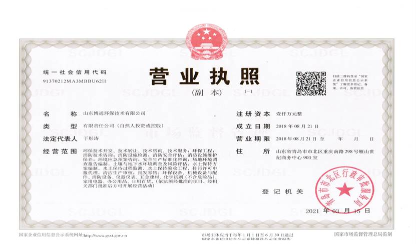 山東博通環(huán)保技術(shù)有限公司是一家專(zhuān)業(yè)從事環(huán)保、安全、消防的多元化技術(shù)服務(wù)公司,公司致力于打造專(zhuān)業(yè)的技術(shù)服務(wù)團(tuán)隊(duì),立足青島,輻射山東,服務(wù)范圍涵蓋:環(huán)保技術(shù)開(kāi)發(fā)、技術(shù)轉(zhuǎn)讓、技術(shù)咨詢(xún)、技術(shù)服務(wù);環(huán)保工程;消防技術(shù)咨詢(xún);消防設(shè)施檢測(cè);消防安全評(píng)估;消防設(shè)施維護(hù)保養(yǎng);環(huán)境應(yīng)急預(yù)案咨詢(xún);安全生產(chǎn)標(biāo)準(zhǔn)化咨詢(xún);場(chǎng)地環(huán)境調(diào)查報(bào)告編制,土壤與地下水環(huán)境調(diào)查及風(fēng)險(xiǎn)評(píng)估,水土保持方案編制,水土保持過(guò)程監(jiān)測(cè),水土保持驗(yàn)收工程,排污許可申報(bào)代理,清潔生產(chǎn)審核;...